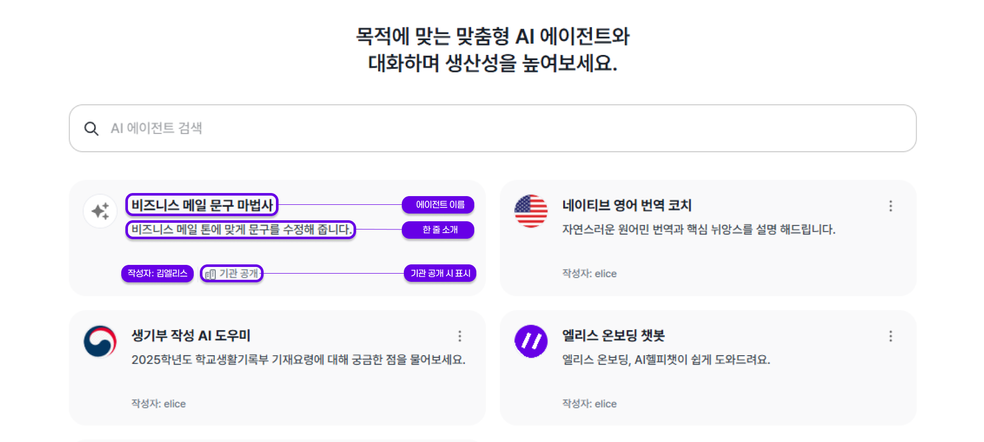 (기관 교육자 및 유저/학생 권한은 ‘나만 보기’로만 에이전트를 생성할 수 있습니다.)