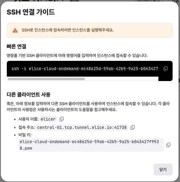 chmod 600 elice-cloud-ondemand-{...}.pem